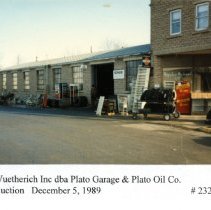 Scanned color photograph of the December 5, 1989 auction for Wuetherich, Inc. dba (doing business as) Plato Garage & Plato Oil Co.
