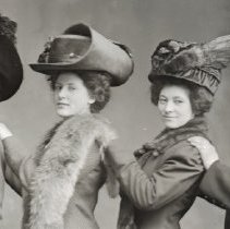 Negative, Glass plate - Harry Secord & young women in hats, 1910